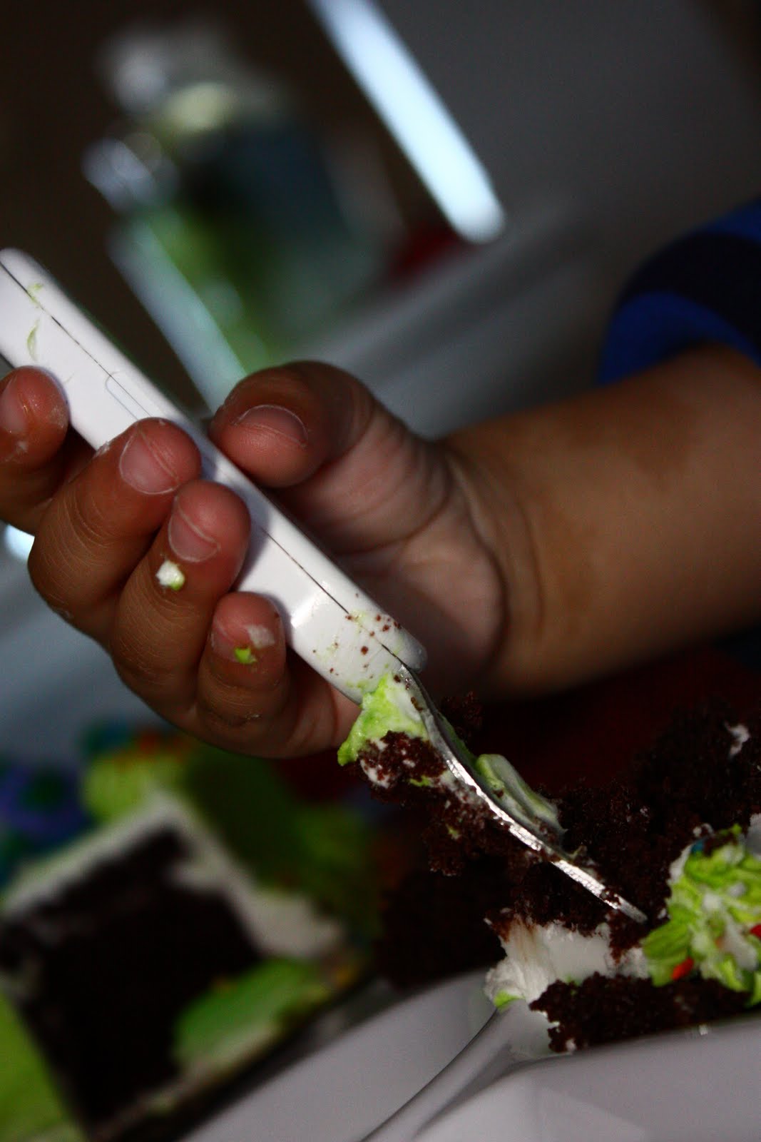 This is his hand today; which I got to watch use a fork and eat his birthday cake with. His Mother and Father are both so gracious to allow us to be a part of his life and theirs. I love this boy. And his Mama.
